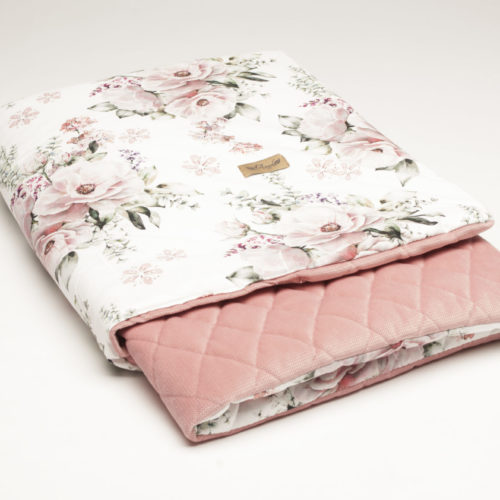 KOŁDERKA/KOC ŚREDNIAKA 75×100 cm, Wiosenne Kwiaty z Velvet pikowany smoky róż caro