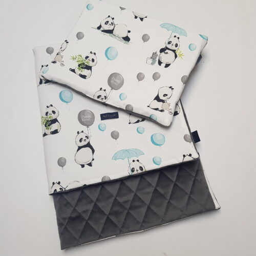 Komplet ŚREDNIAKA LIGHT koc 75×100 cm, poduszka 30×40 cm PANDY z Ultra soft Velvet ciemno szary pikowany w caro