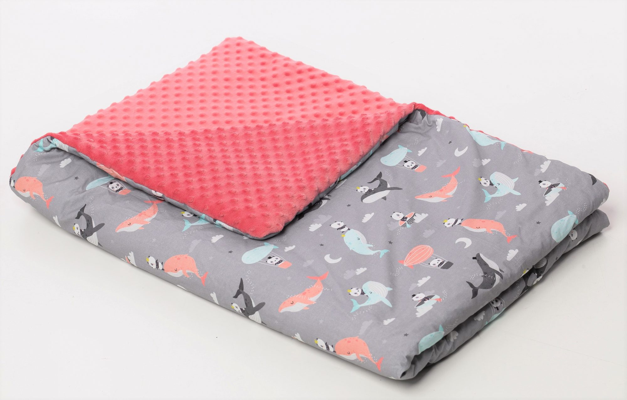 Koc przedszkolaka 100×150 cm, Wieloryb z pandami strawbery ice kropki