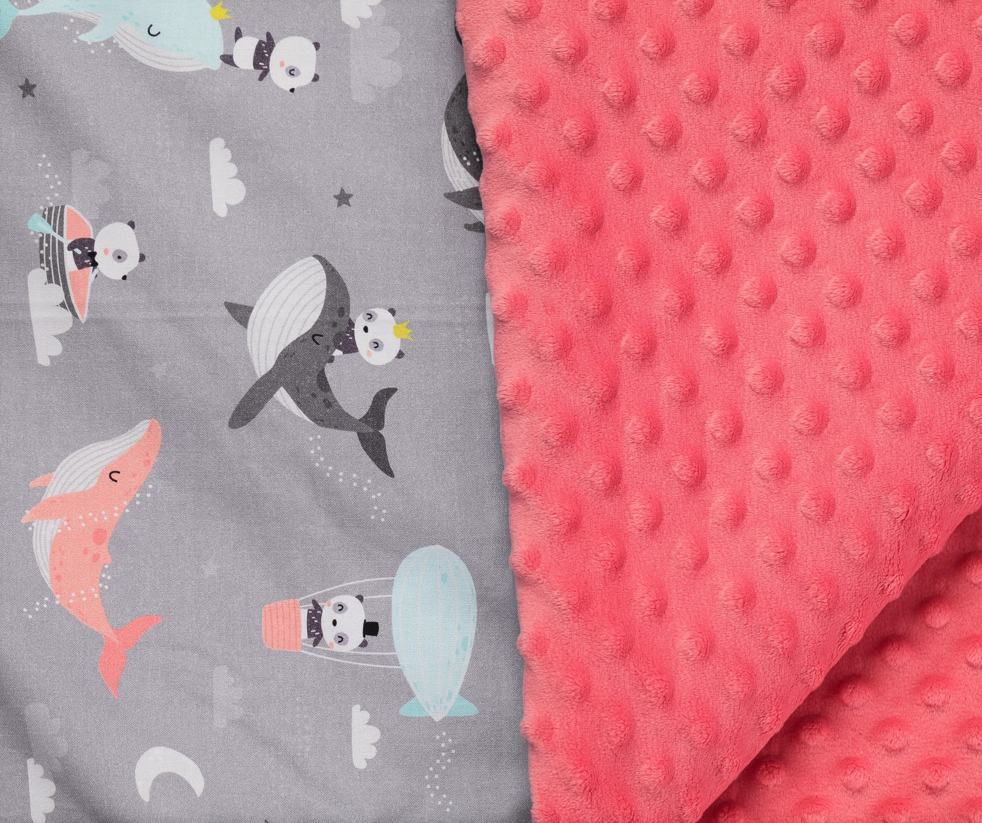 Koc przedszkolaka 100x150 cm, Wieloryb z pandami strawbery ice kropki - 4Angels